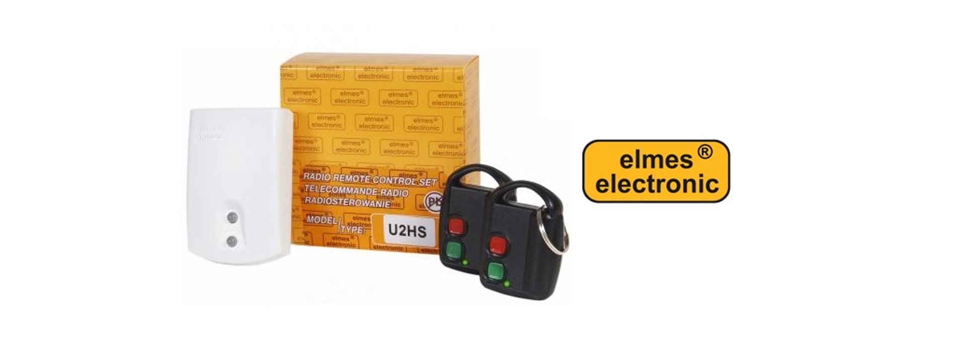Elmes UMB100H: Klasikinis dviejų mygtukų pultelis, pasižymintis puikiu signalo atstumu (iki 100 metrų atviroje erdvėje).